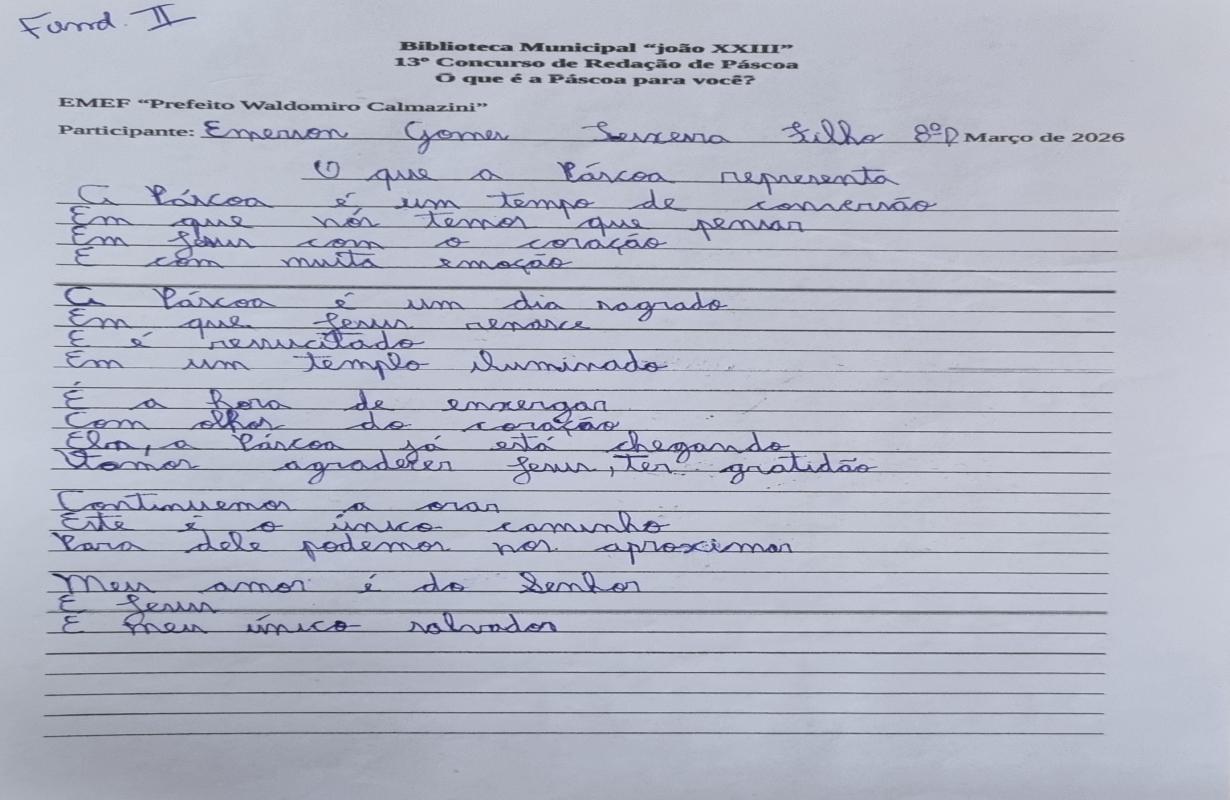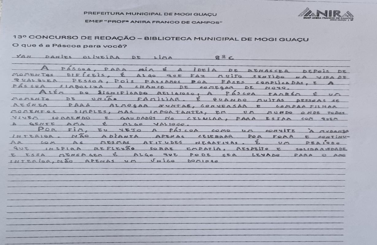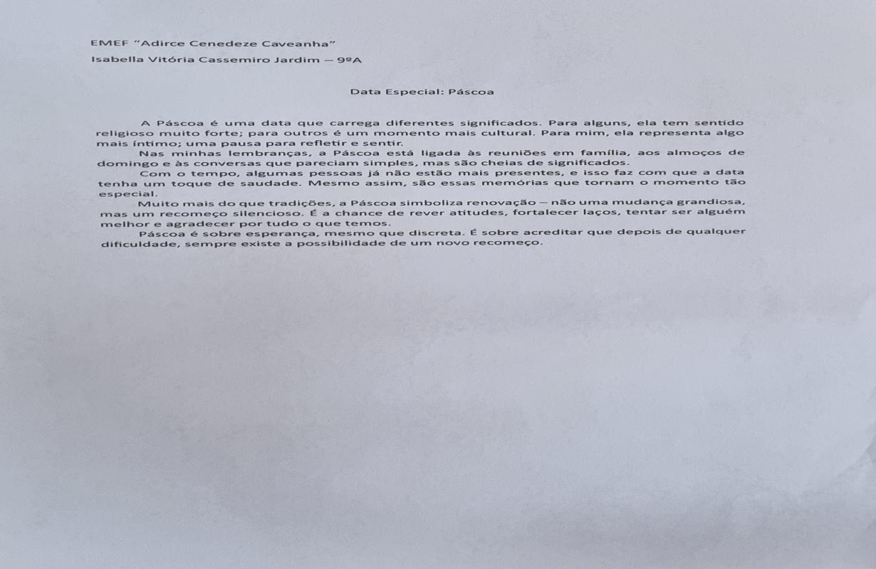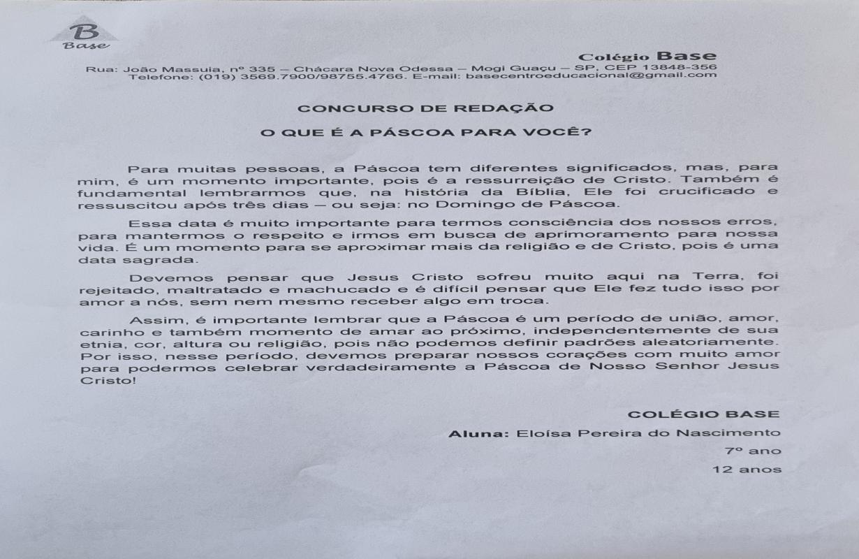 A Associação Comercial parabeniza todos os estudantes participantes e, em especial, os vencedores, que demonstraram criatividade, sensibilidade e reflexão ao abordar o verdadeiro significado da Páscoa. Iniciativas como essa reforçam a importância da educação e incentivam o protagonismo das novas gerações na construção de uma sociedade mais consciente e inspiradora.