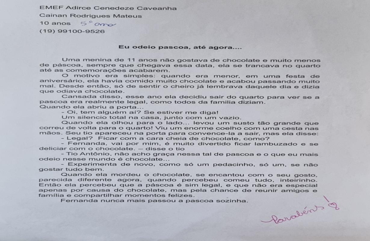 As crianças vencedoras foram presenteadas com ovos de Páscoa doados pela Associação Comercial e Industrial de Mogi Guaçu, reforçando o compromisso da entidade com ações que promovem a educação, a cultura e o desenvolvimento das novas gerações.