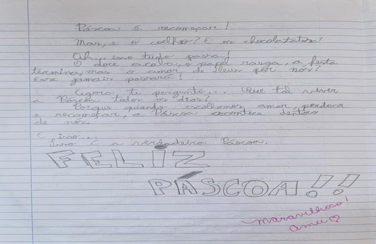 Na tarde desta segunda-feira, 30 de março, aconteceu no Teatro Tupec a cerimônia de premiação do 13º Concurso de Redação da Páscoa, que neste ano trouxe como tema: “O que é Páscoa para você?”.