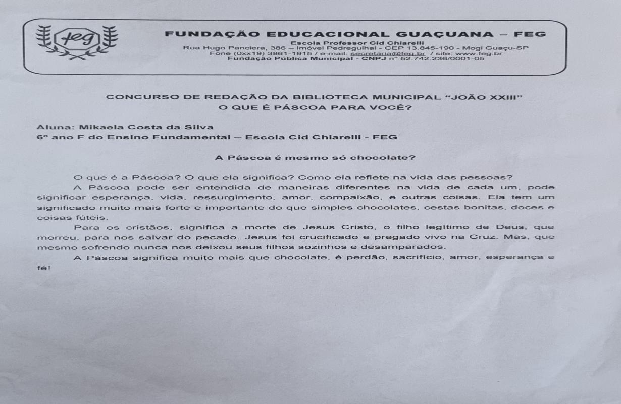 - Mikaela Costa da Silva – FEG – Fundação Educacional Guaçuana
